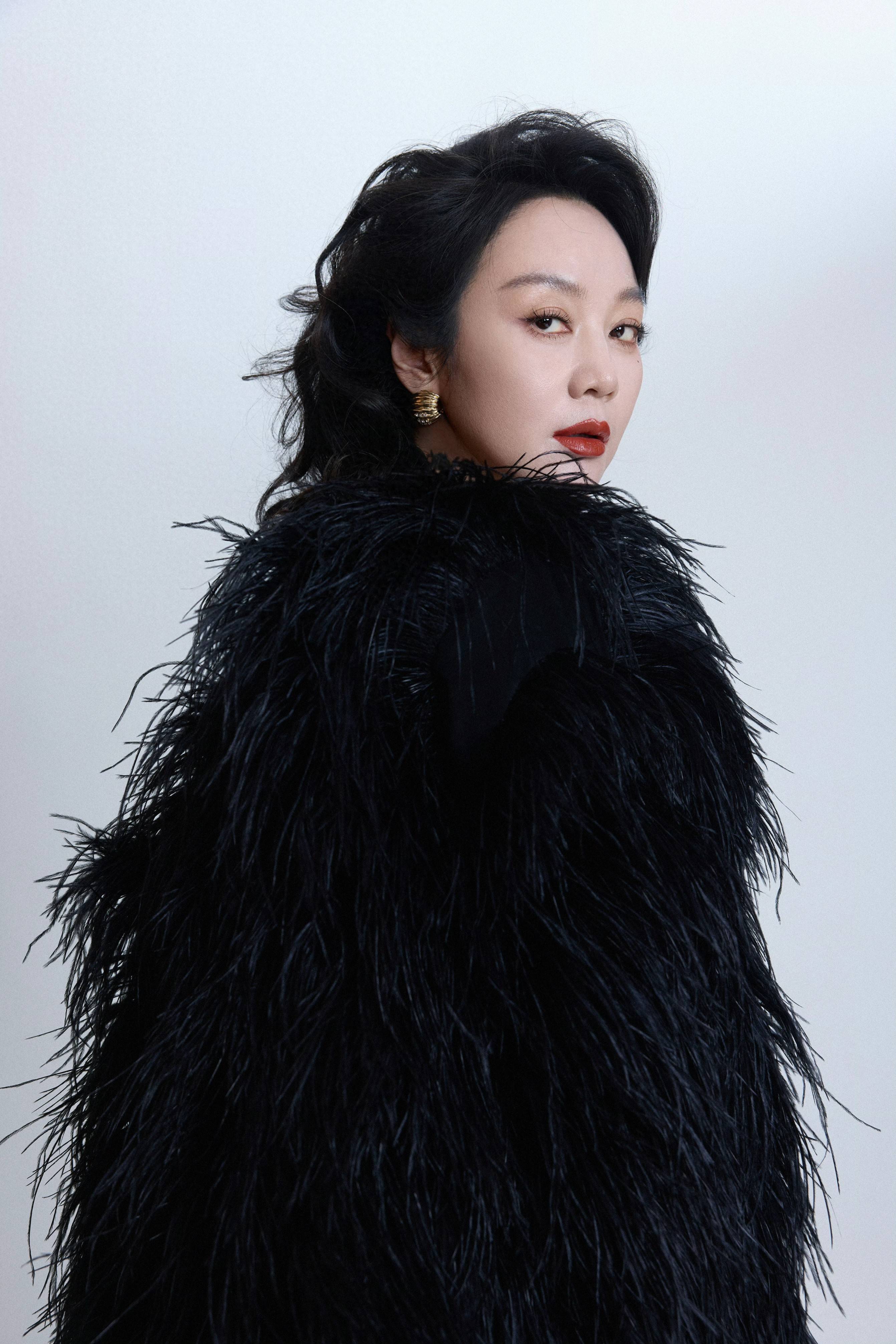 闫妮黑色穿搭飒爽,羽毛添华丽、金属展个性